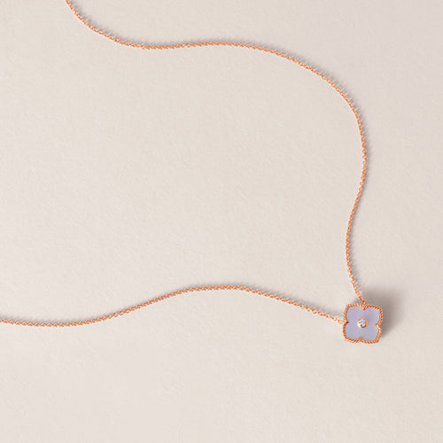 14k Rose Gold Diamond Clover Mother of Pearl Necklace -